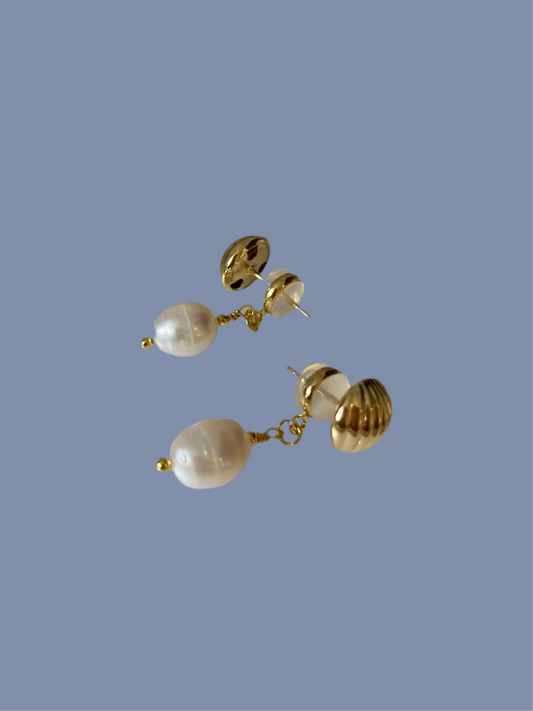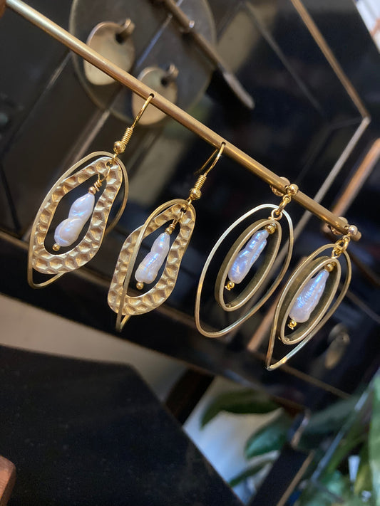 Tulum•Unique Freshwater Pearl Hand Hammered Golden Geometric Earrings