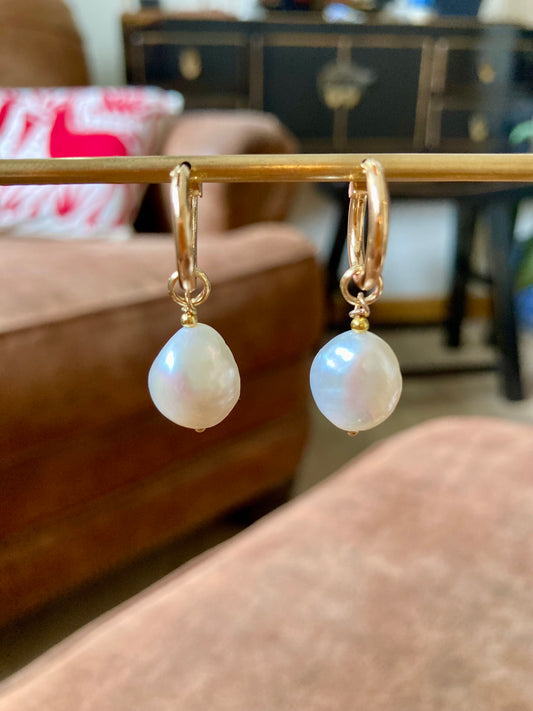 Interchangeable Baroque Freshwater Pearl Huggies Earrings