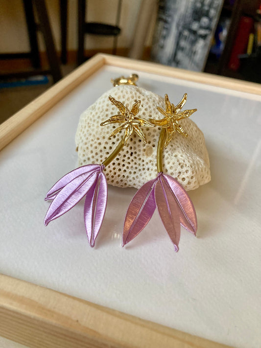 Interchangeable Heritage Skills Hand-wrapped Silky Thread Lavender Gold Floral Studs Earrings