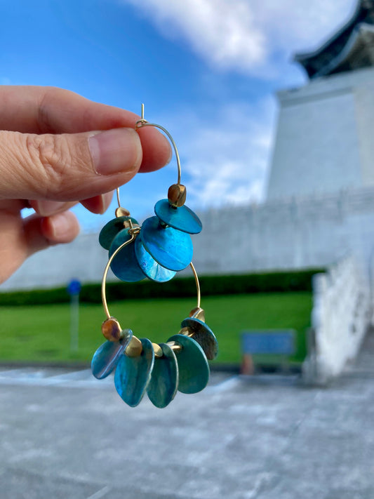 Tulum•Unique Hand Hammered Golden Geometric Turquoise Beads Tassel Earrings