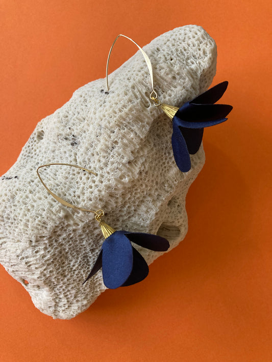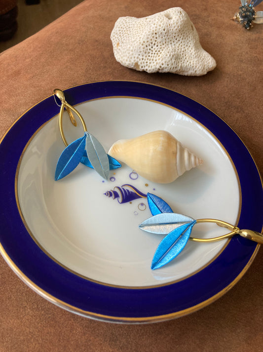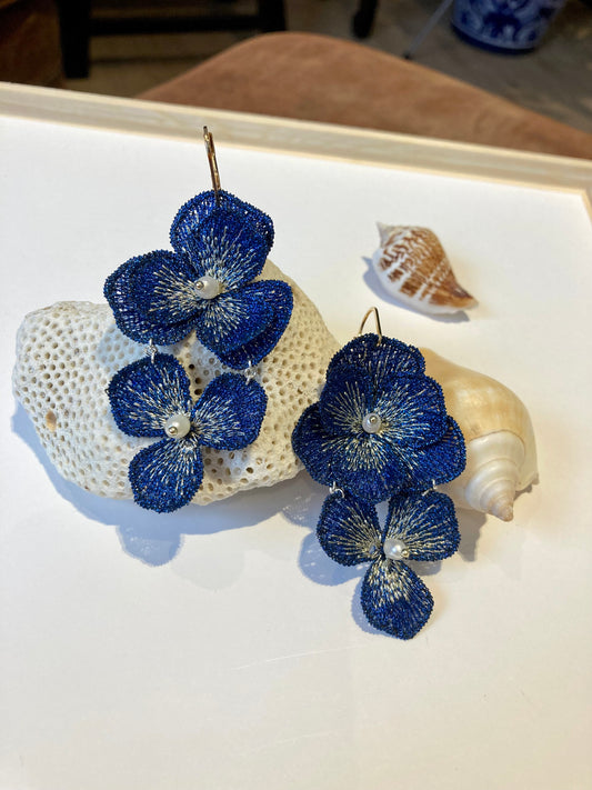 Unique Design Statement Hand-wrapped Silky Thread Mixed Blue Floral Earrings