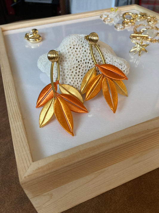Interchangeable Heritage Skills Hand-wrapped Silky Thread Yellow-Gold-Orange Mixed Color Floral Stud-Earrings