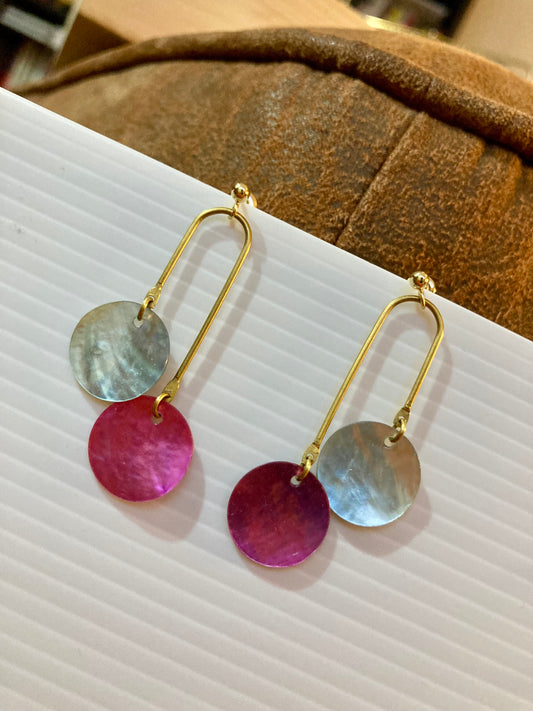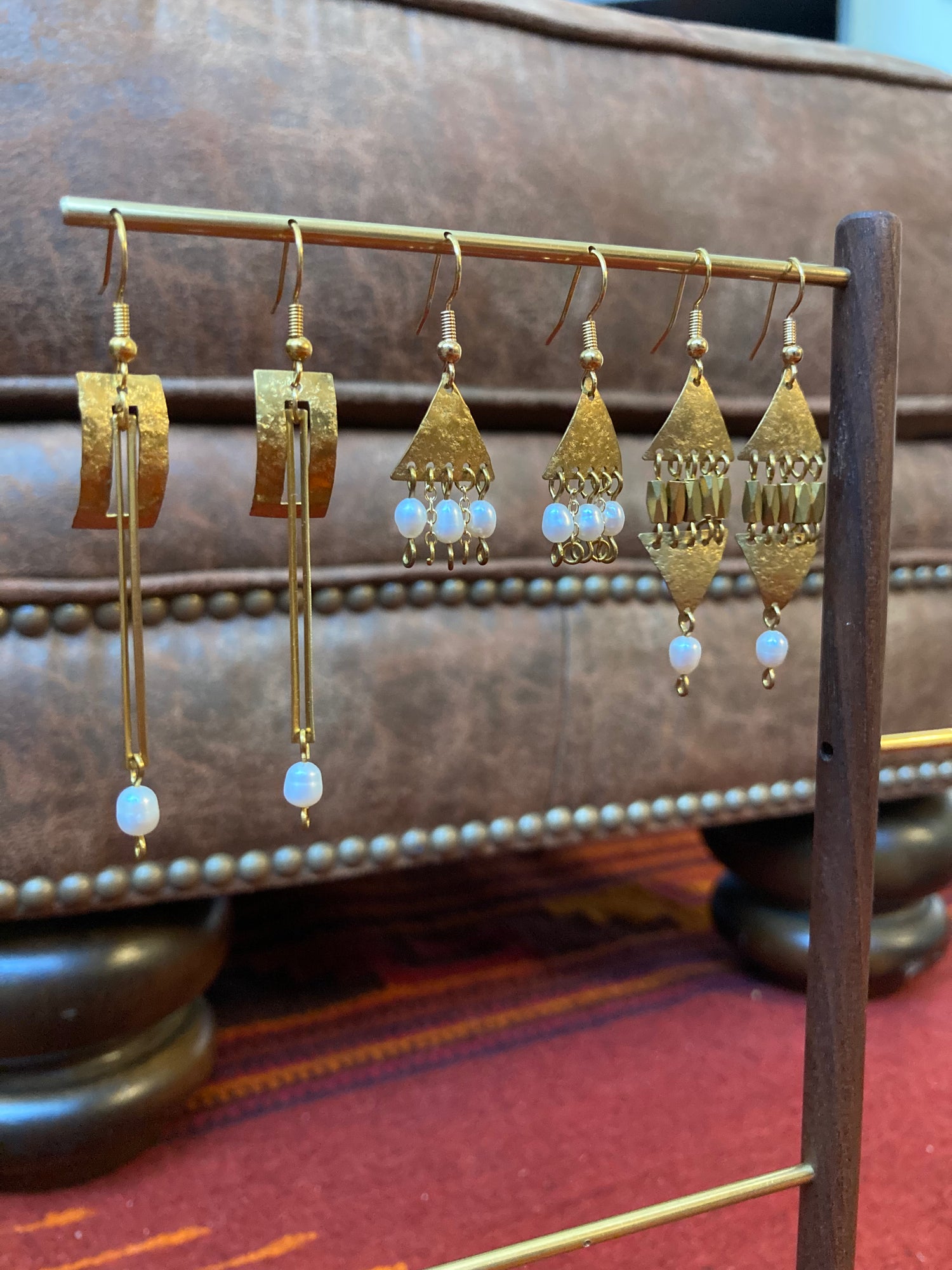 Lynn T• Freshwater Pearl Modern Geometric Design Golden Dangling Earrings