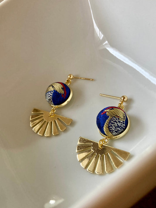 Jocelyn•Golden Contemporary Design Song brocade Silk Birdies Studs