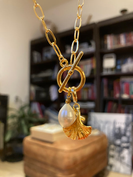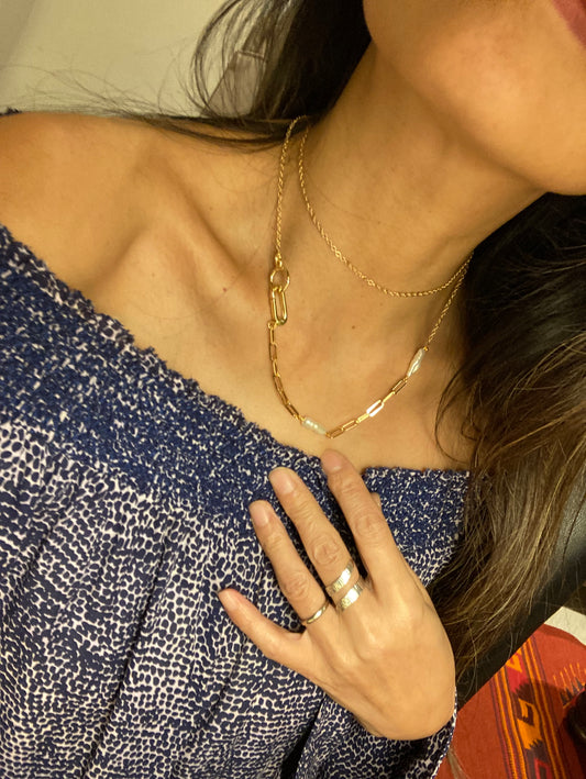Jenning•Fun Chic Interchangeable 3+ ways to style Freshwater Pearl Choker/Long necklace /Chain belt/ Badge Chain