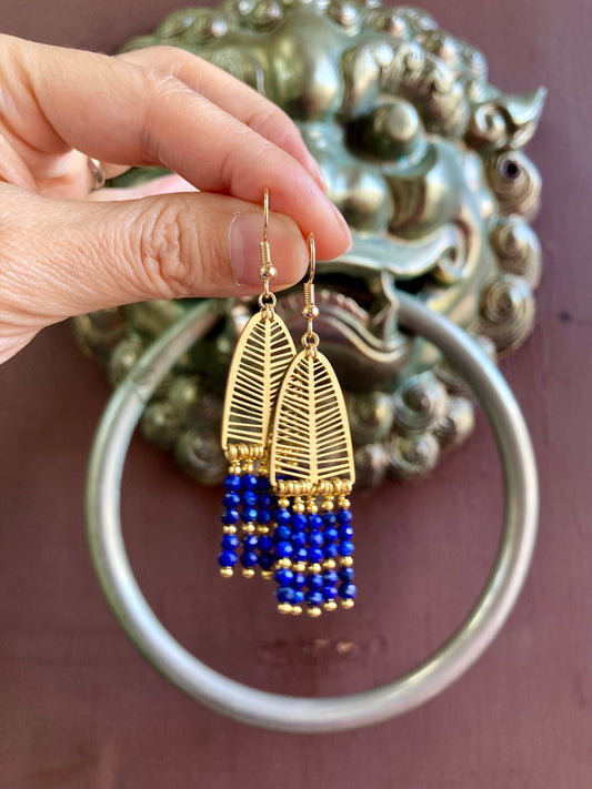 Lapis Lazuli Beads Golden Tree Tassel Earrings