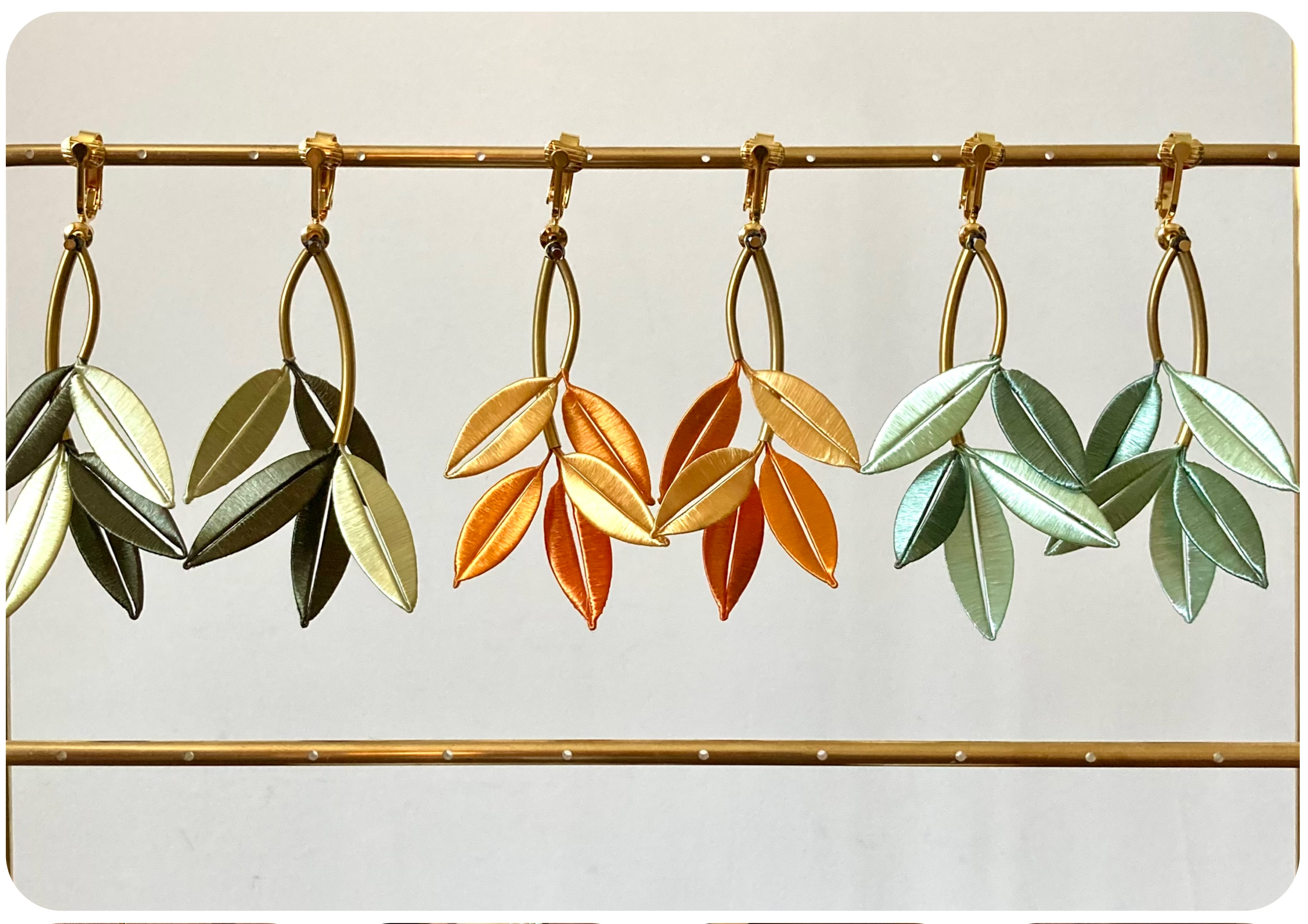 Anna•Fun 3-in-1 Interchangeable Design Freshwater Pearl Golden Tree Leaf Earrings