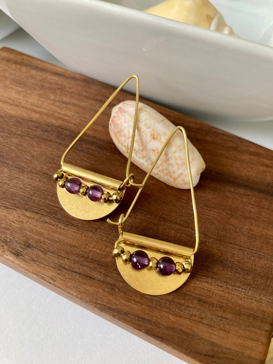 Deborah•Modern Geometric Design Semi-precious Gemstone Golden Earrings