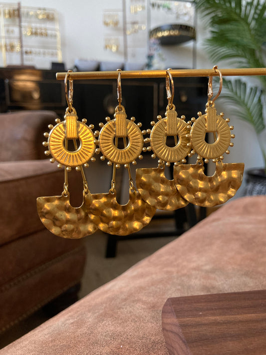 Discovery - Geometric Design Multi-Style Golden Hammered Brass Earrings