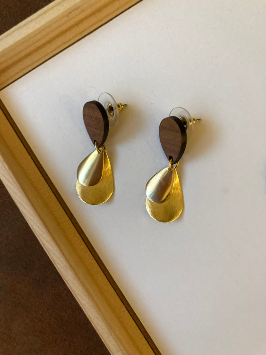 Discovery • Unique Golden Brass Wood Stud Earrings