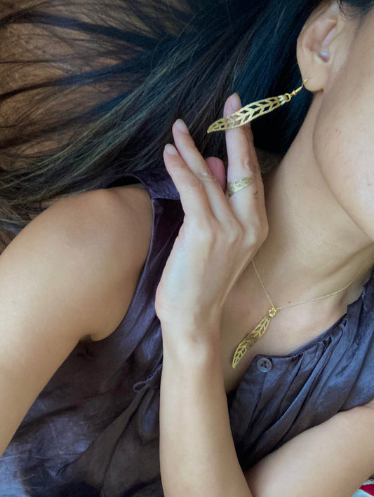 Discovery-Set-Golden Leaf Earrings+Necklace+Ring One of a Kind Set