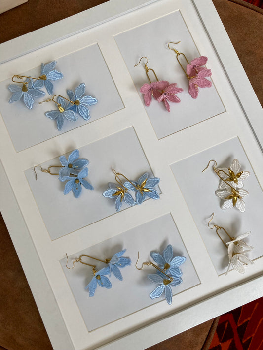 Eleanor•Statement Simplicity Design White Floral Dangling Earrings