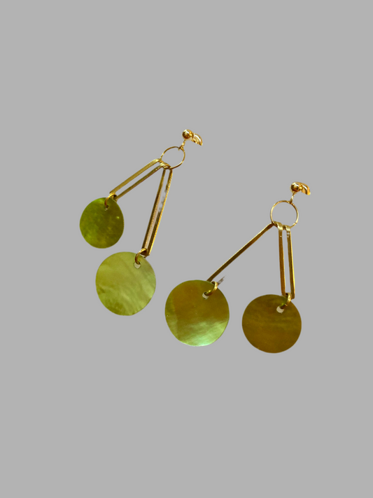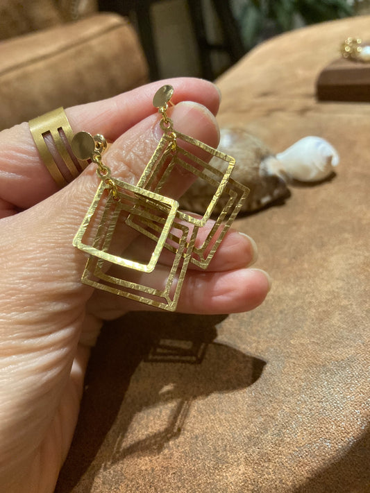 Tulum•Unique Freshwater Pearl Hand Hammered Golden Geometric Earrings