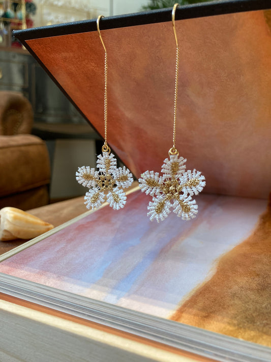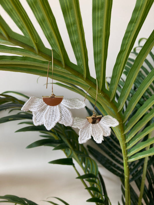 Eleanor•Statement Simplicity Design White Floral Dangling Earrings