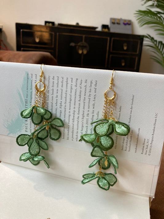Summer• Unique Design Statement Green Flower Dangling Earrings
