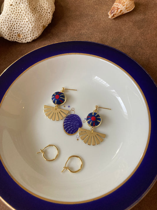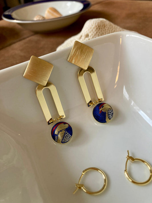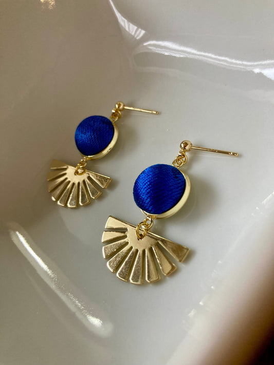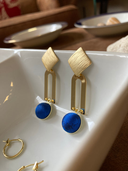 Golden Geographic Design Silk Earring Studs-Royal Blue