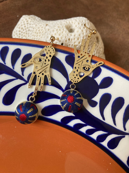 Precila • Gold Bohemian Magic Hand Silk Earring Studs