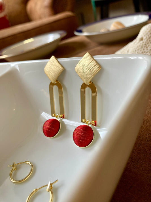 Sun in Blue Sky•Golden Contemporary Design Silk Earring Studs-
