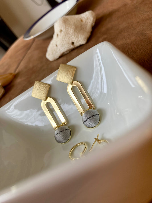 Jocelyn•Golden Contemporary Design Song brocade Silk Birdies Studs