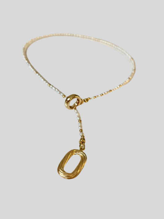 Jenning•Fun Chic Interchangeable 3+ ways to style Freshwater Pearl Choker/Long necklace /Chain belt/ Badge Chain