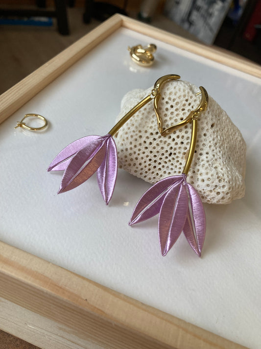 Holly•Statement Unique Design Hand-wrapped Silky Threads Shiny Lavender Floral Earrings