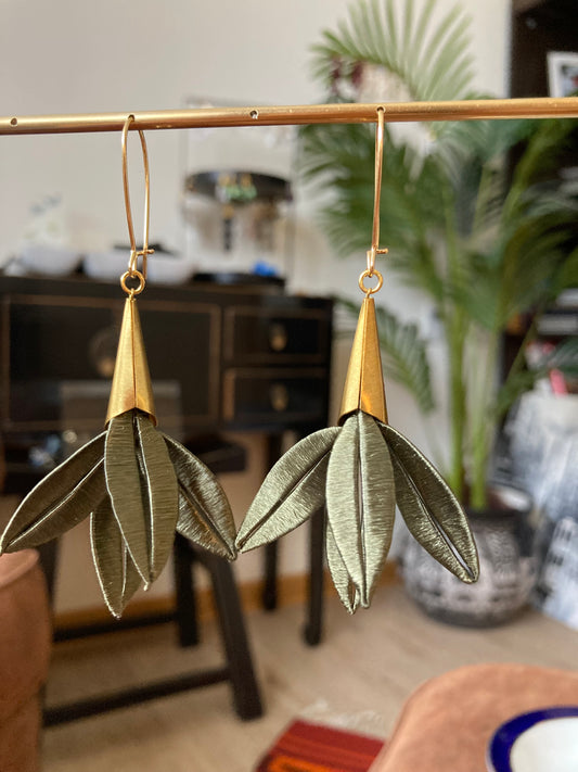 Statement Elegant Hand-wrapped Shiny Silky Thread Leaf Floral Earrings