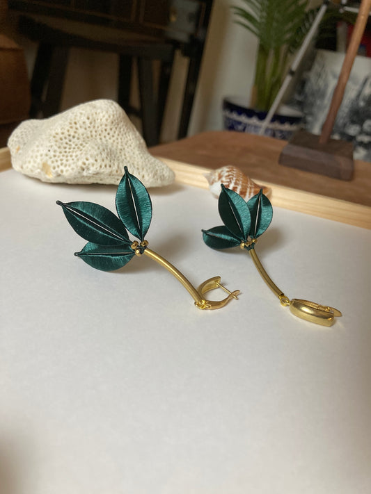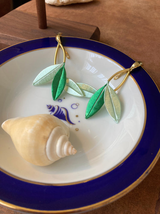 Caroline•Spring&Autumn•Unique Design Shiny Hand-wrapped Silky Threads Leaves Earrings