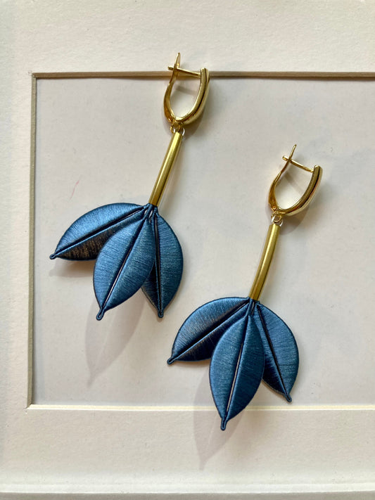 Statement Elegant Hand-wrapped Shiny Sky Blue Silky Thread Leaf Floral Earrings