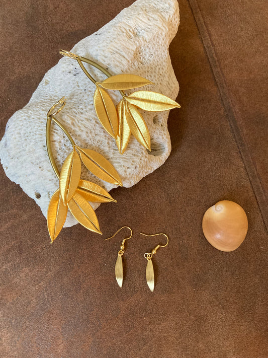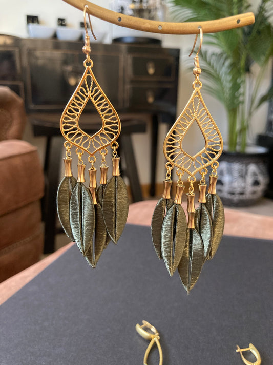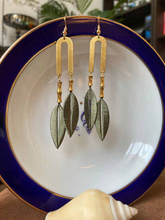 Gorgeous Shiny Hand-wrapped Shiny Seaweed Green Silky Thread Tree Leaf Earrings