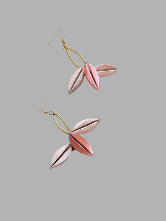 Statement Unique Design Hand-wrapped Shiny Baby Pink Silky Thread Floral Earrings