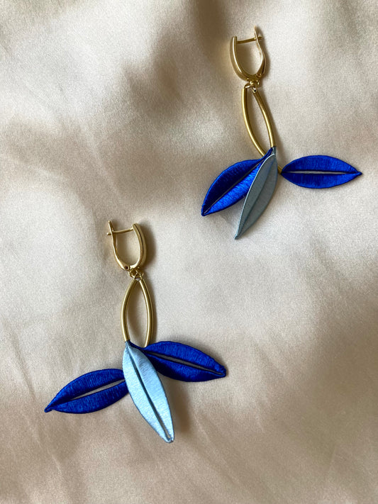 Jenny•Unique Design Statement Hand-wrapped Silky Thread Blue Floral Earrings