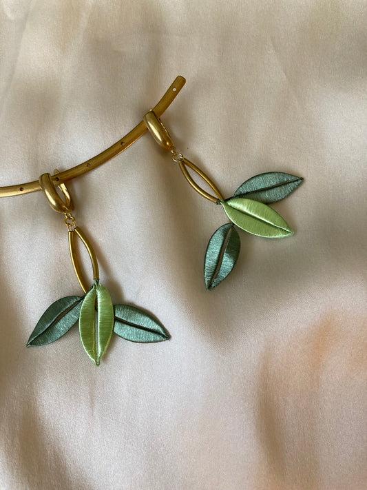 Modern Design Shiny Hand-wrapped Shiny Green Silky Thread Tree Leaf Earrings