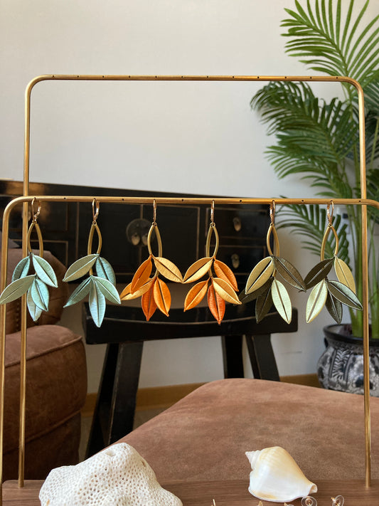 Kisses•Shiny Hand-wrapped Shiny Mixed Red Color Silky Thread Tree Leaf Earrings
