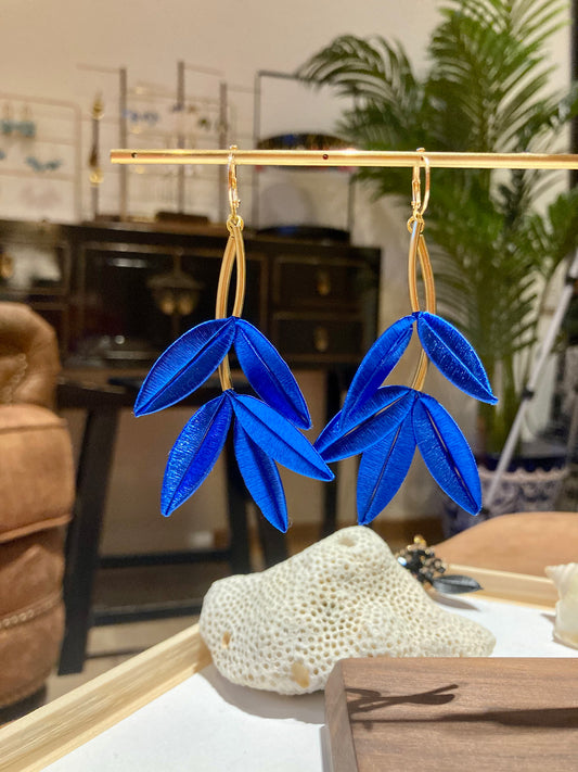 Sylvia•Unique Design Statement 6+Way-to-Style Hand-wrapped Royal Blue Silky Thread Floral Earrings