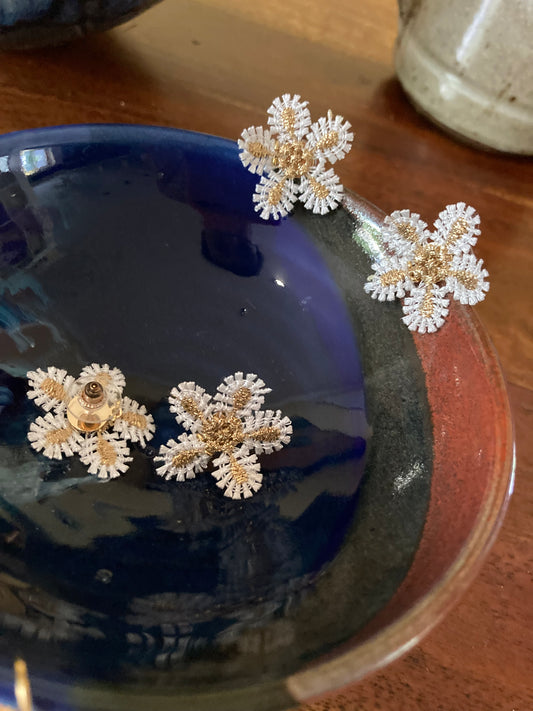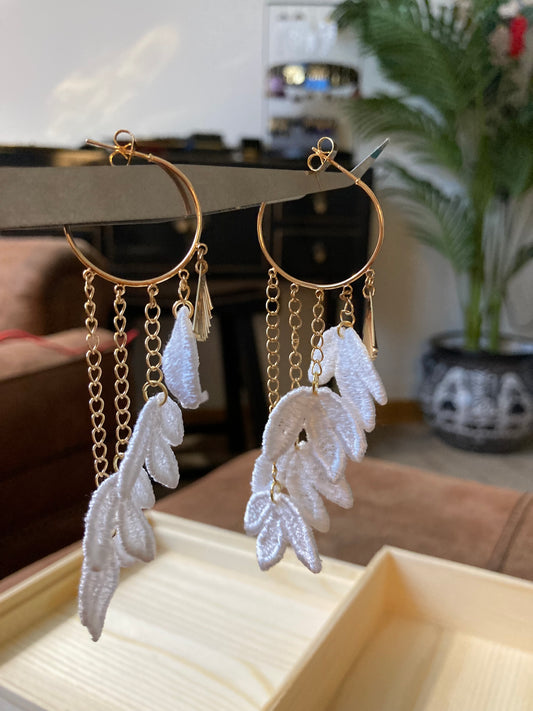 LE White Floral Dangling Earrings