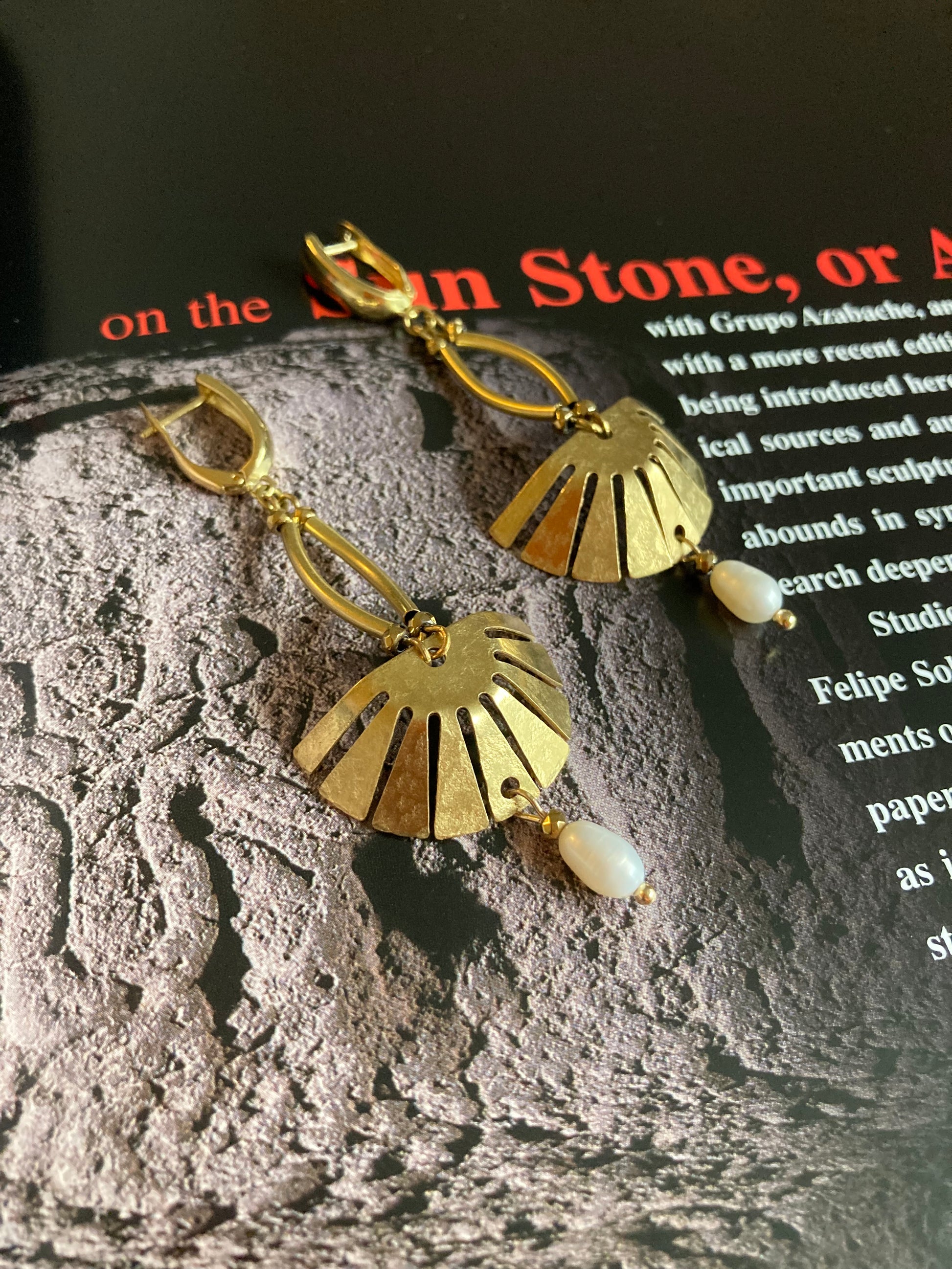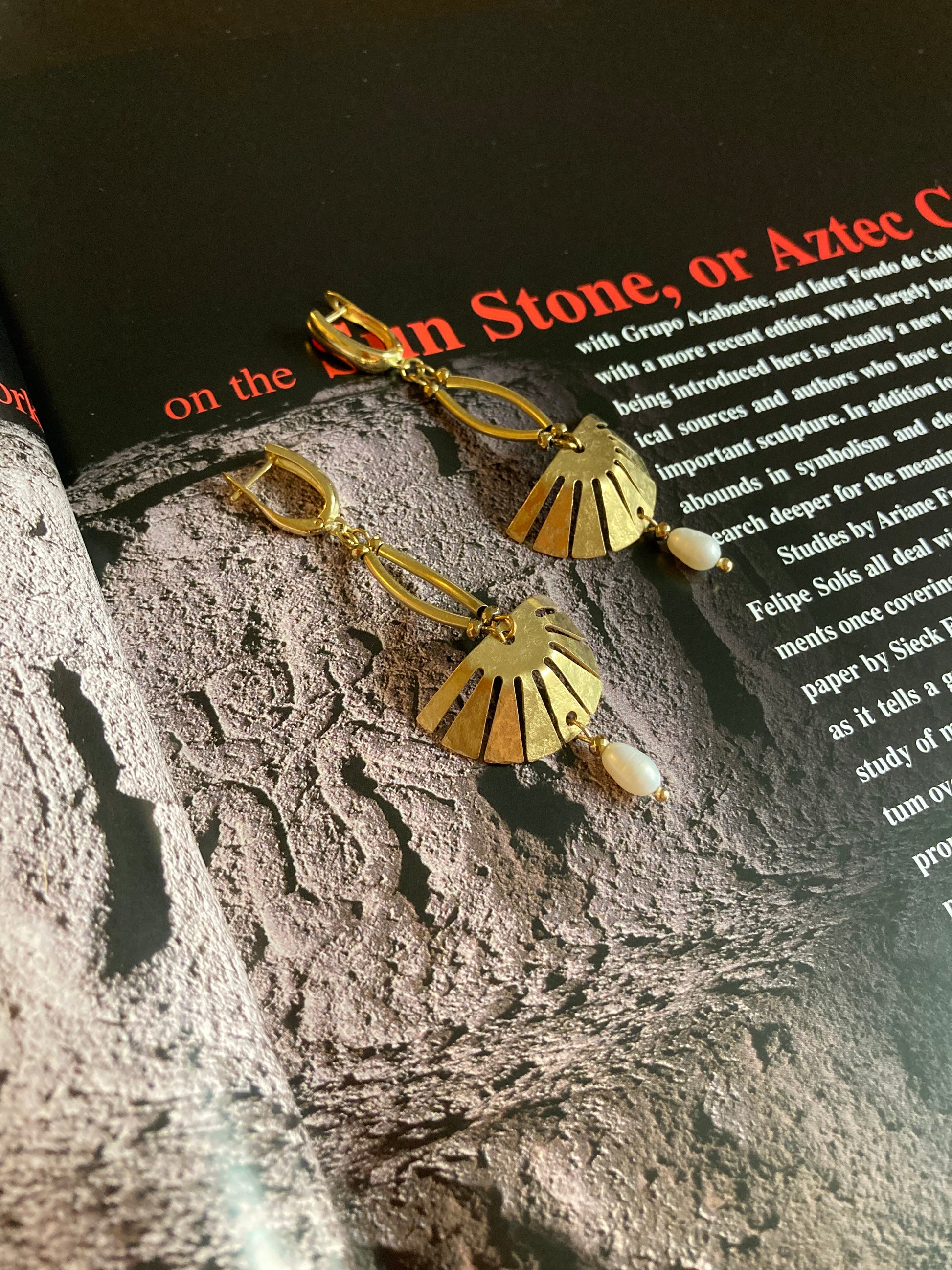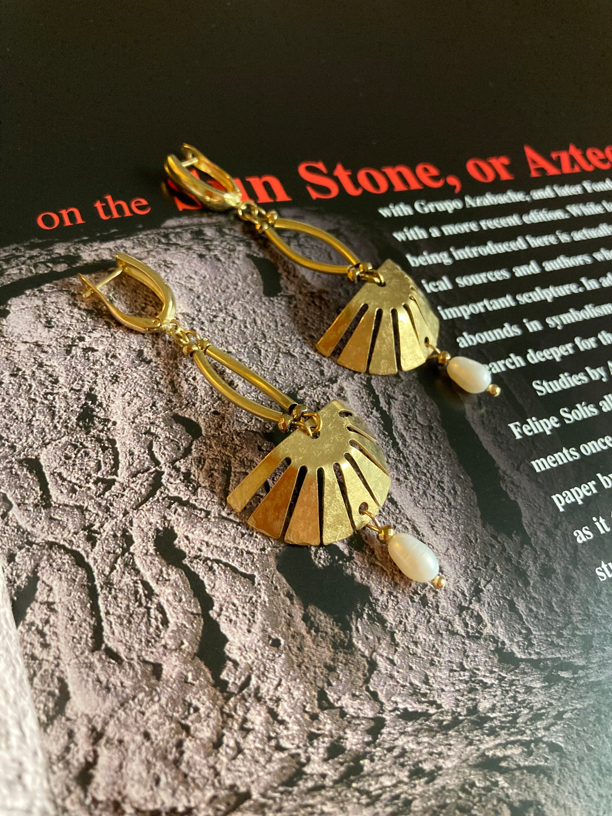 Tulum•Unique Freshwater Pearl Hand Hammered Golden Geometric Earrings
