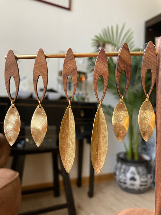 Julie•Discovery-Golden Hand Brushed & Hammered Brass Leaf Wood Stud Earrings