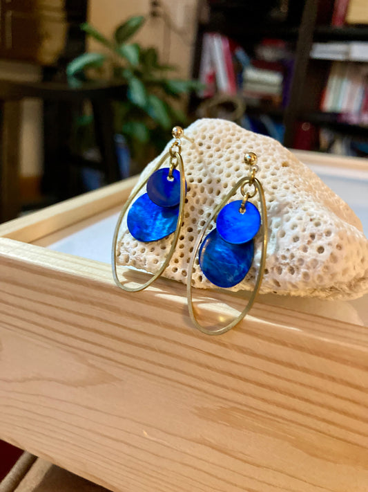 Tulum•Unique Turquoise Beads Hand Hammered Golden Geometric Earrings