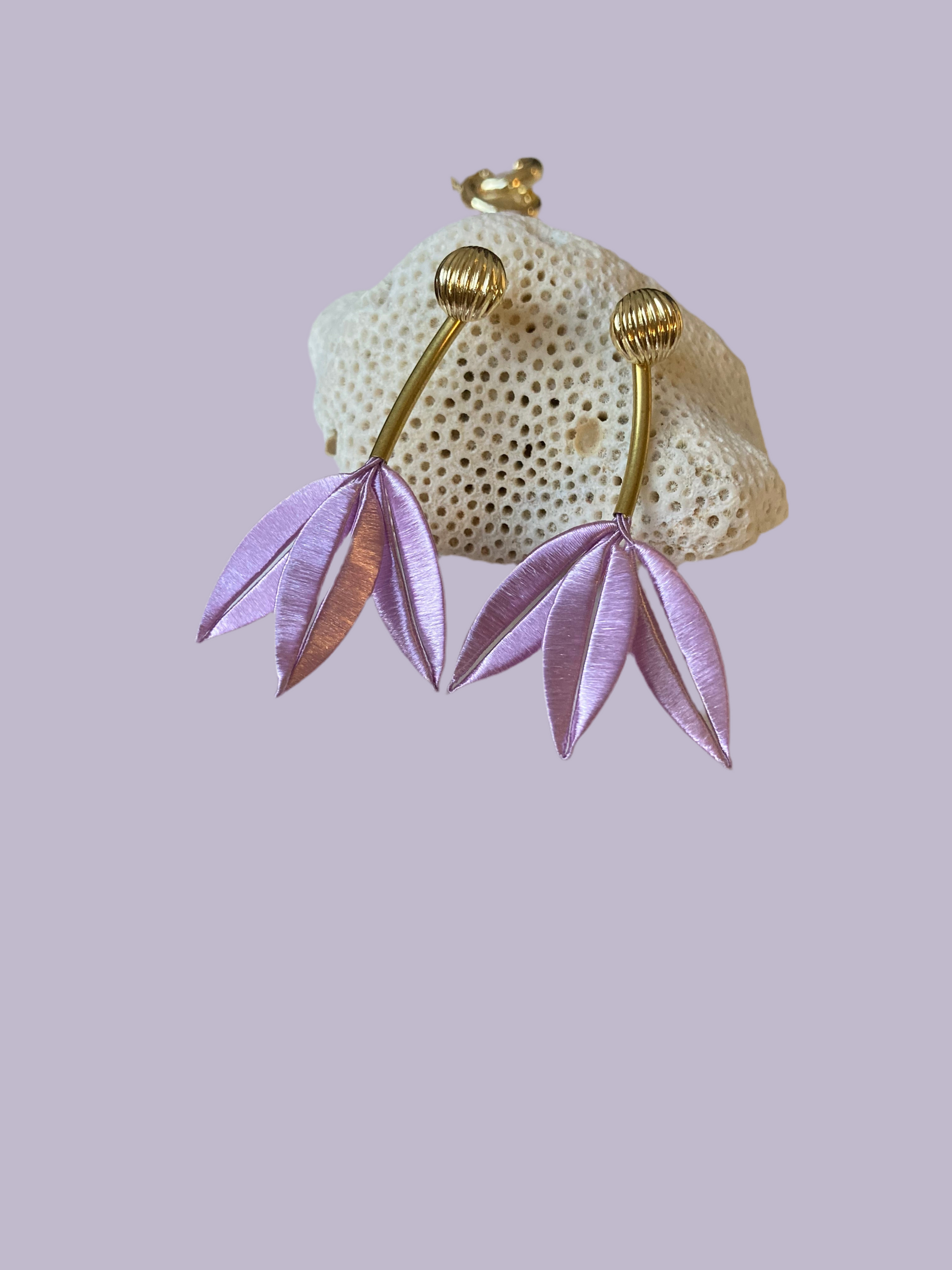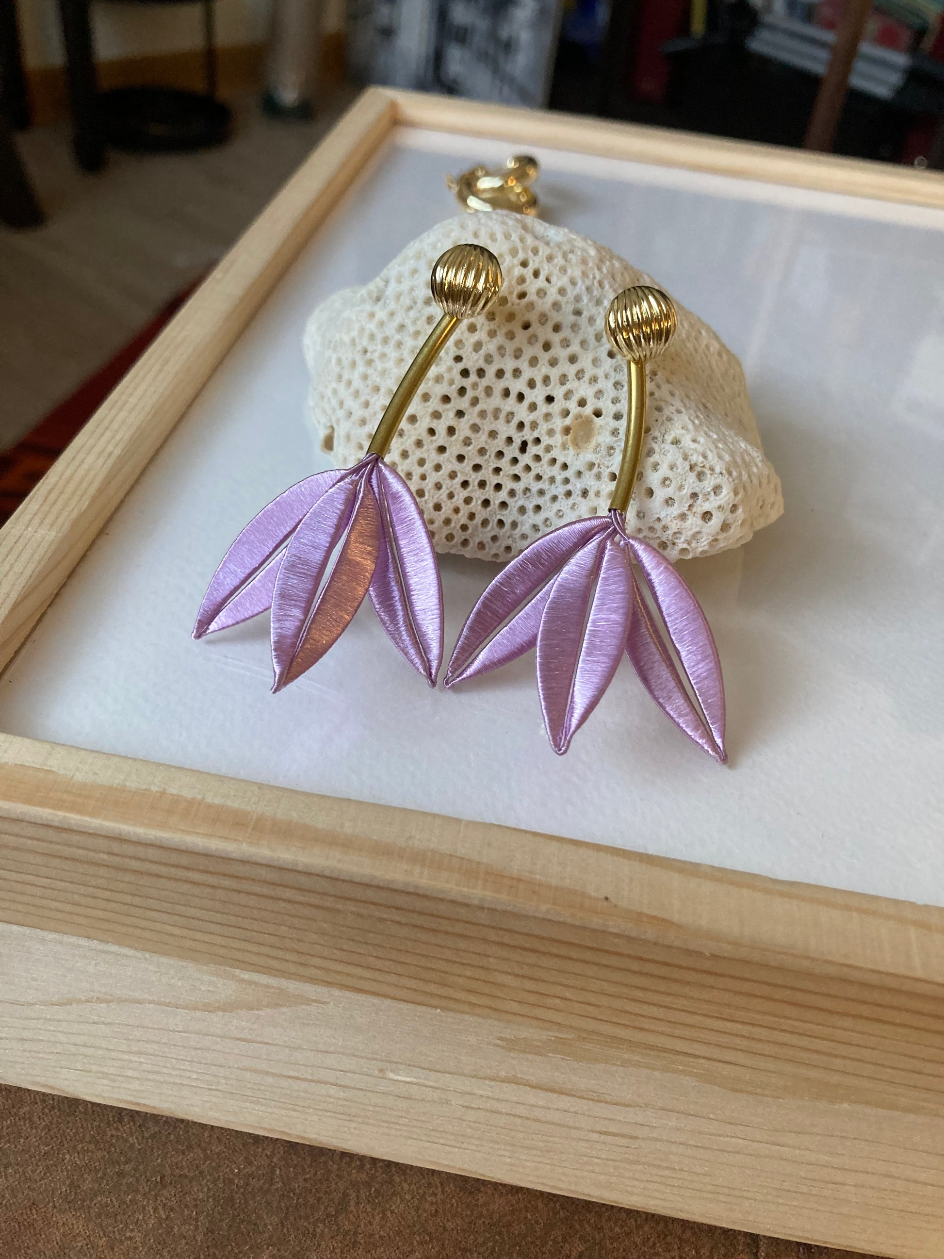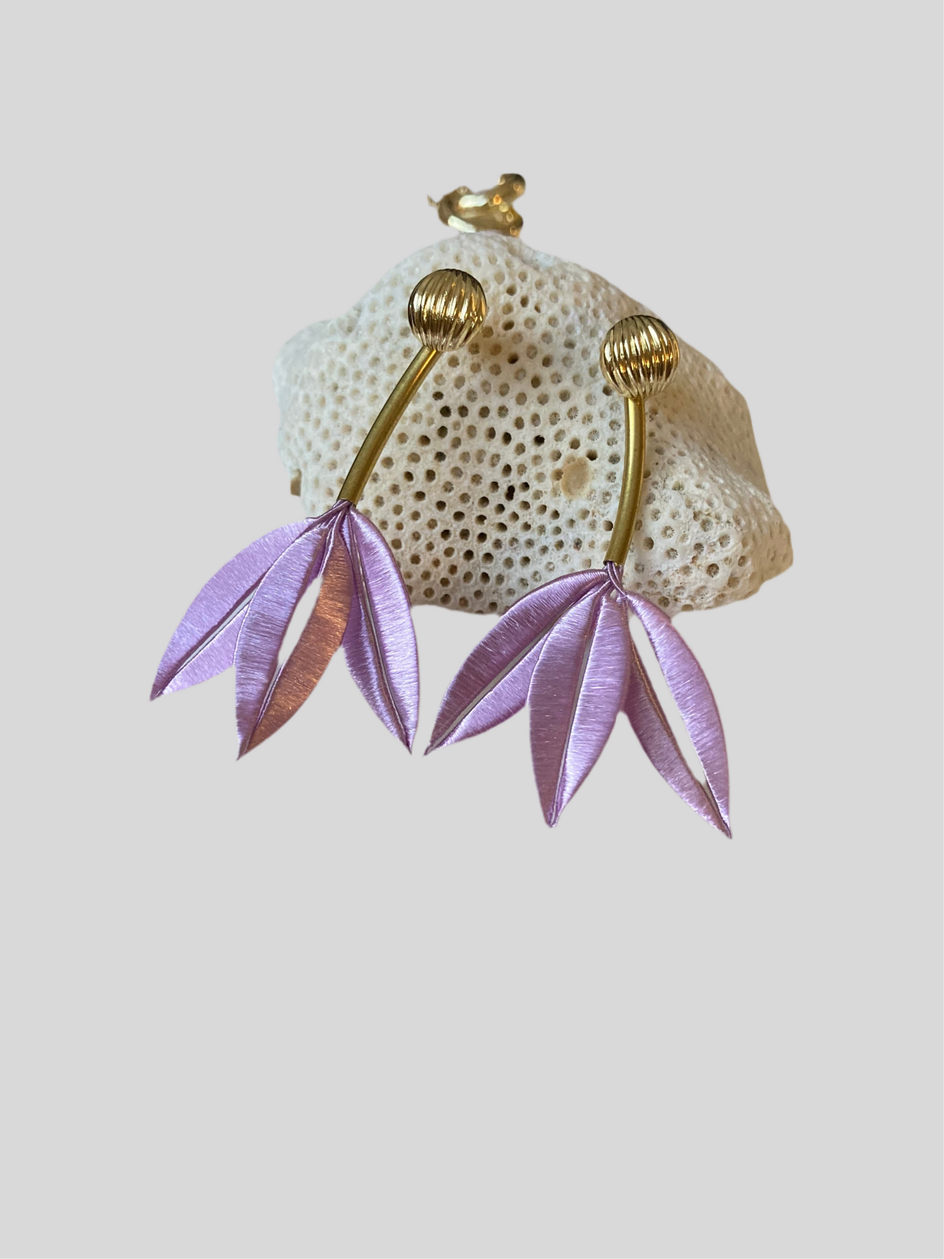 Features: Statement hand-wrapped shiny silky thread lavender floral earrings. Elegant and unique earrings for the free-spirited woman. Available in 24-color and styles for customization(French fishhook, Lever-backs, Studs).